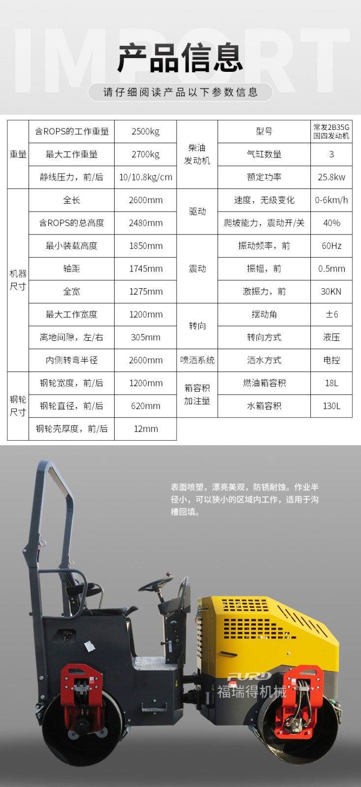 FYL-1100  2.5噸全液壓壓路機(jī)