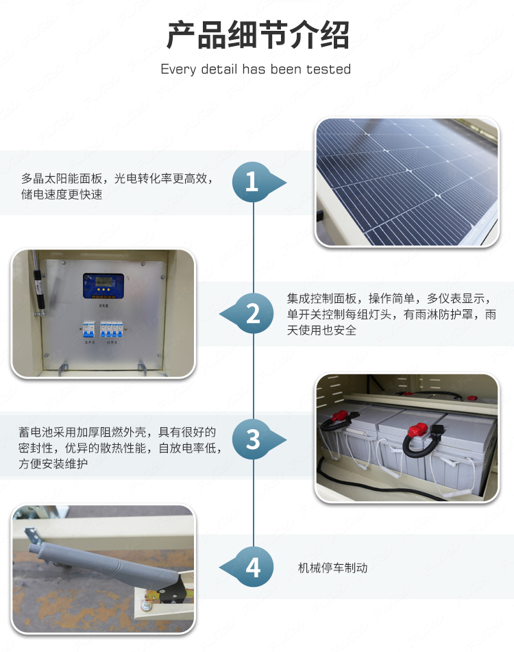 我們開發(fā)了一種新產(chǎn)品,叫做太陽能光塔,它的設(shè)計(jì)理念是節(jié)能環(huán)保。它可以長(zhǎng)時(shí)間部署在偏遠(yuǎn)地區(qū),并由太陽能自行供電。它通過可調(diào)節(jié)的太陽能電池板自動(dòng)充電,運(yùn)行干凈,安靜,高效。