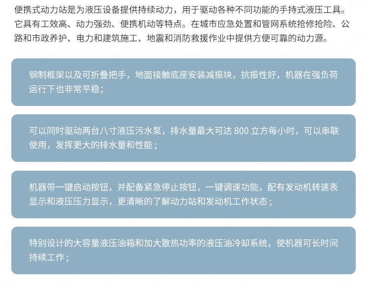 適用于路面搶修、道路施工、市政維護(hù)、保養(yǎng)、園林等工作場(chǎng)景 ;.設(shè)備安裝便捷,搬運(yùn)簡(jiǎn)便,適應(yīng)性強(qiáng),可輕松解決破碎、切削、分裂、打樁、壓實(shí)等施工項(xiàng)目。